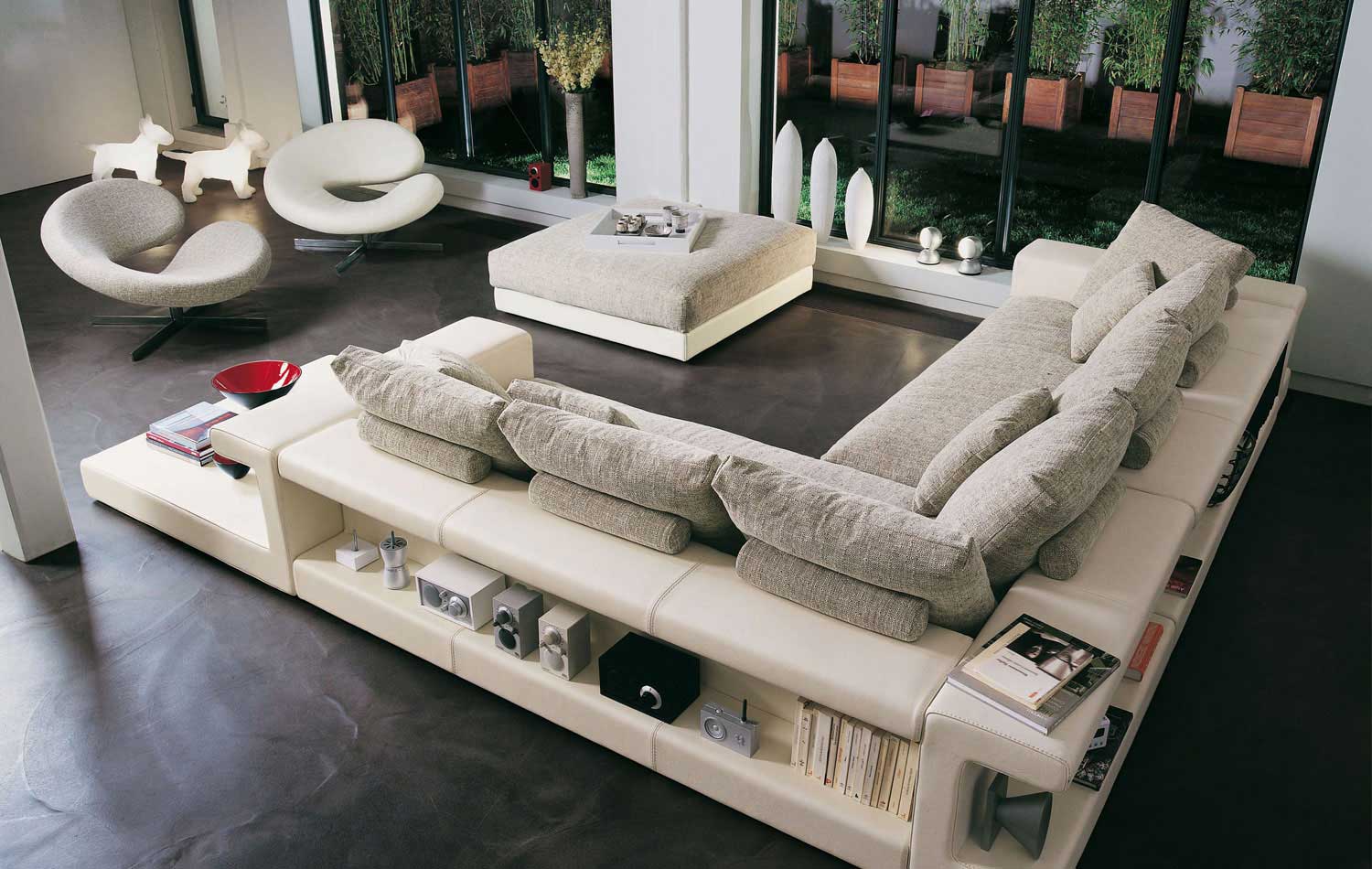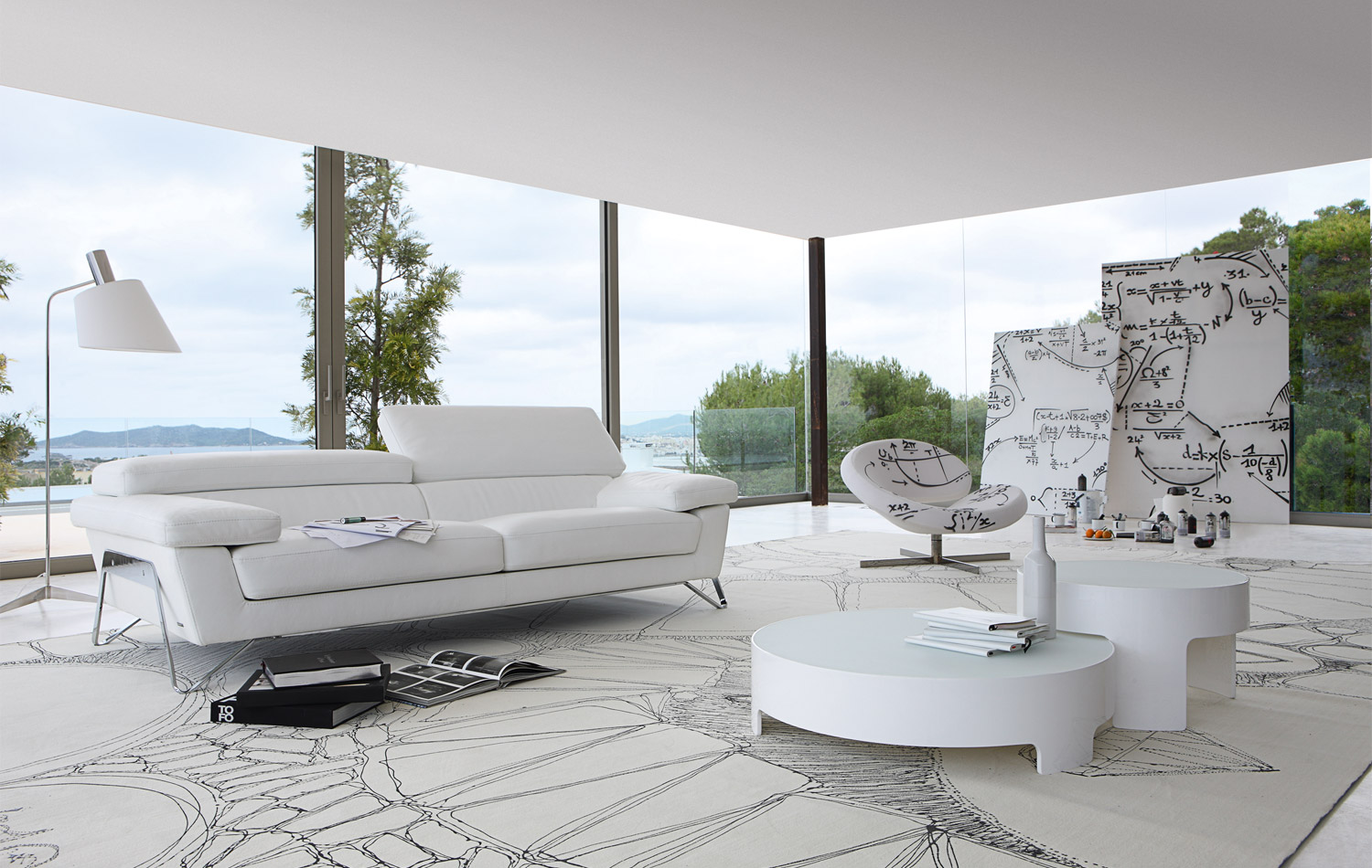 Nếu không nhờ những bức tường kính, có thể bạn sẽ khó nhận ra được bộ sofa trắng nền nã cùng kiểu dáng dịu dàng uốn tinh tế theo thiết kế căn phòng cùng bàn kính độc đáo cho một không gian đẳng cấp, sang trọng.